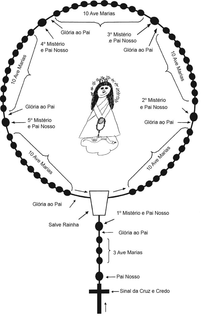 Veja aqui um esquema de como rezar o Rosário com transferimento fácil de PDF. Todas as orações do Rosário estão incluidas. Também, veja o nosso vídeo com instruções passo a passo sobre como rezar o Rosário.